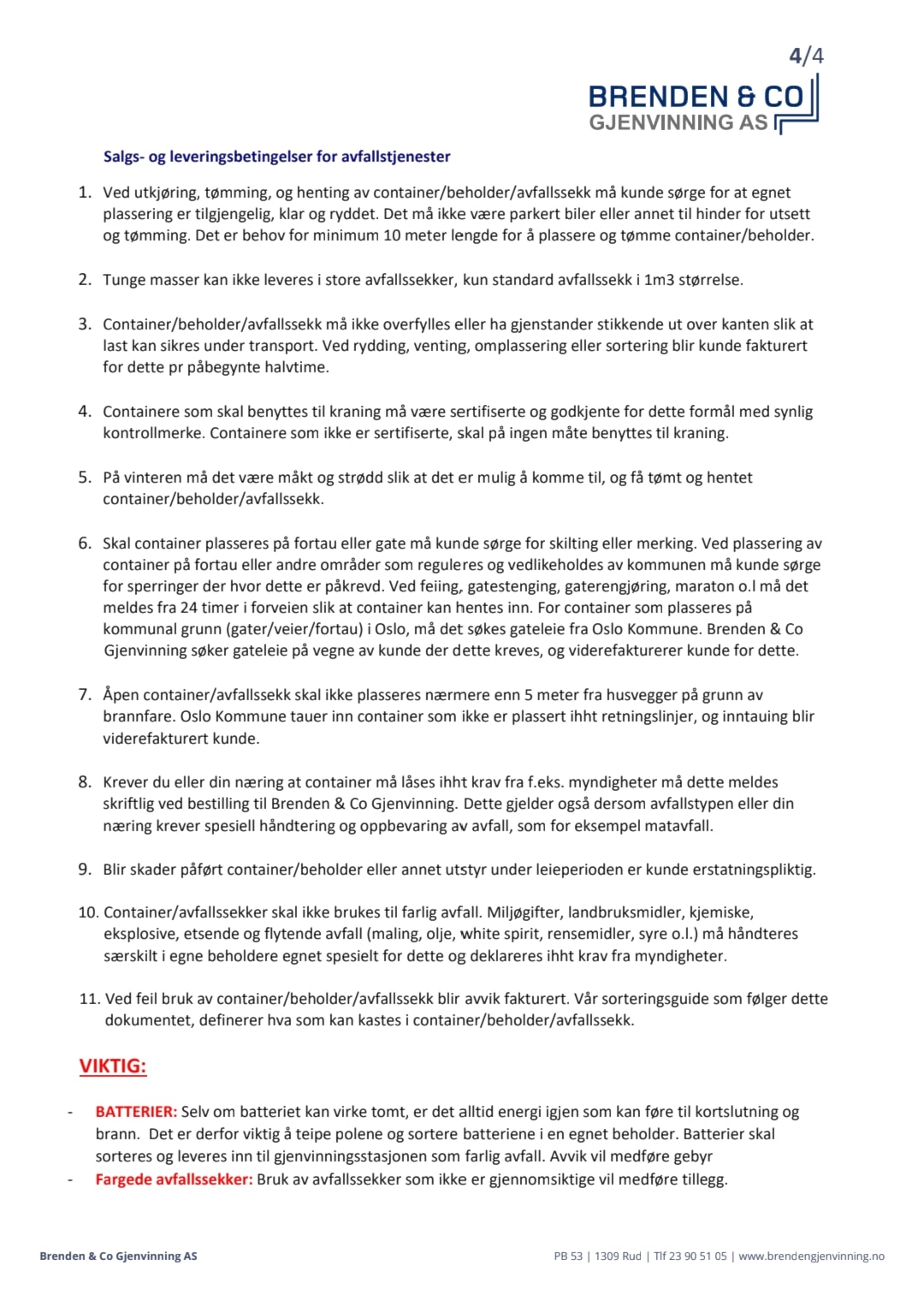 | Merk ar avfall som maling, elektronikk, gips og annet som ikke brenner lett IKKE skal kastes i containeren. Da vil dette medføre gebyrer som belastes sameiet. | ![]() |